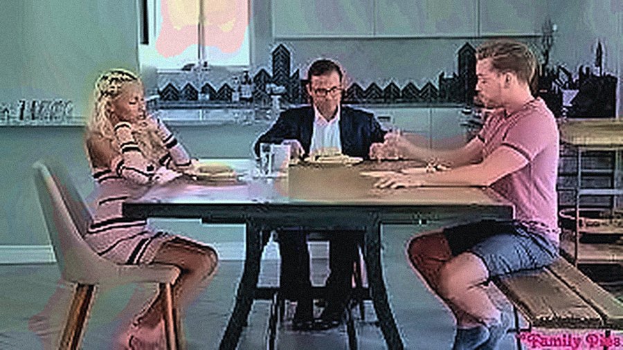 No Limits Tonight Busty teen and her stepsister are on the couch watching their fa...