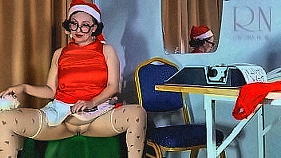 Steamy Debut Pretty lady secretary dressed as a gnome, Santa's assistant on Christ...